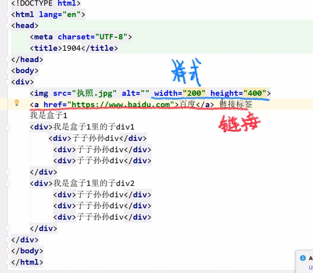 2.img 在body中打img按Tab键,width和height设置图片大小(样式)