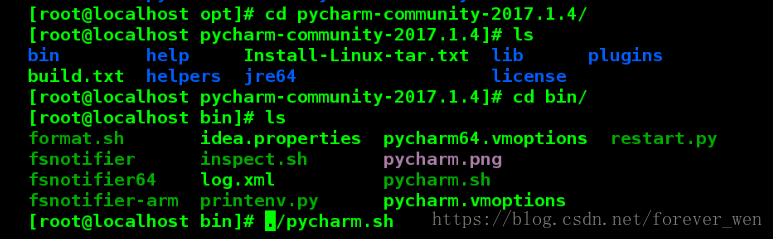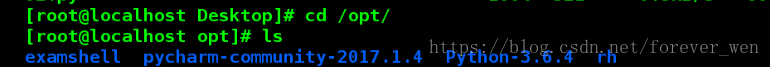2.解压下载好的源码安装包到指定的目录下(这里我解压到/opt),进入/opt目录会发现有一个pycharm的文件夹