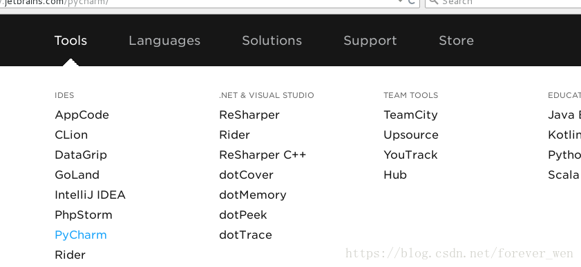 进入官网,选择toolsx下的pycharm,再点击右上角的download,进去后选择想要的版本即可。