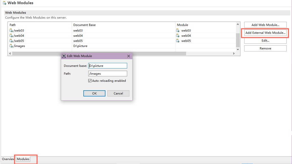首先双击服务器servers 进入如下界面 点击左下角Modules 这里你可以看到自己的当前所有模块