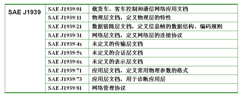 SAE J1939标准的文档构成: