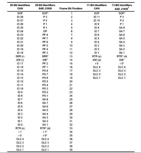 SAE J1939和CAN的仲裁场与控制场