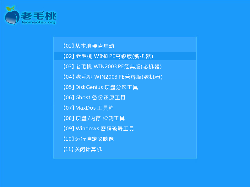 5、选择02(不行或者旧机器就选择03),等待进入PE
