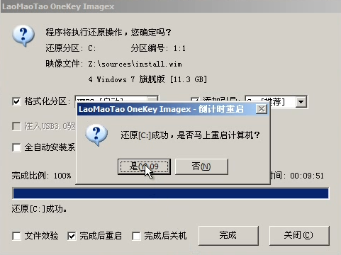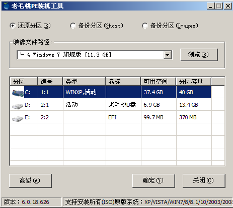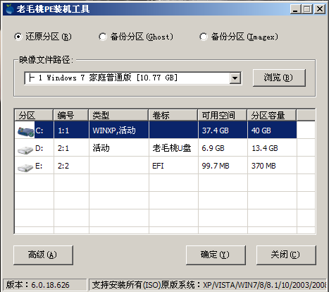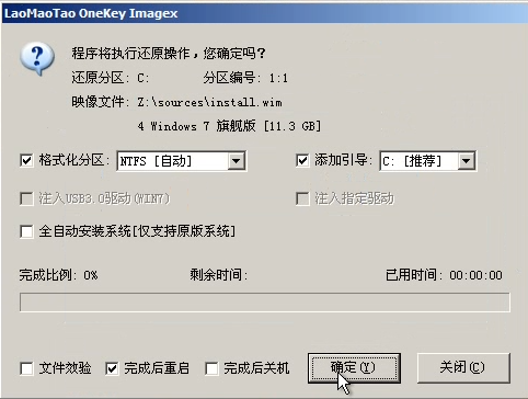 7.4、选择安装在C盘,点击确定,进入系统安装