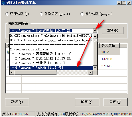 7.3、点击下来按钮,选择版本(系统安装包为旗舰版)