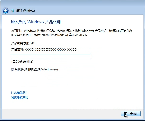 如遇到让你输入秘钥,你可以跳过,进入下一步(后面会有激活的),如果实在不能跳过就找一个输进去,如: