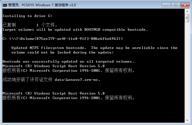 3、不管什么,如果停下来就按回车键,直到出现下图,成功地安装了许可证文件。