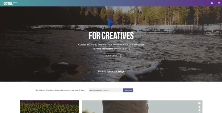 一个免费提供创意短视频的网站,它每10天就会更新10个高清短视频,各种类型的都有,直接搜索你想要的视频就行,还可以直接订阅,会自动将更新的视频发送到你的邮箱。