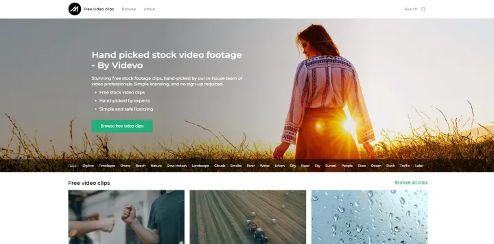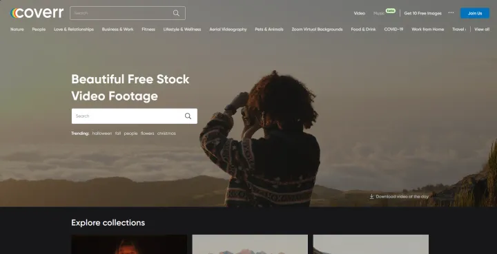 一个完全免费的库存素材网站,它里面的视频类型有自然、人们、爱情与人际关系、商业与工作、健康、航拍、宠物和动物、缩放