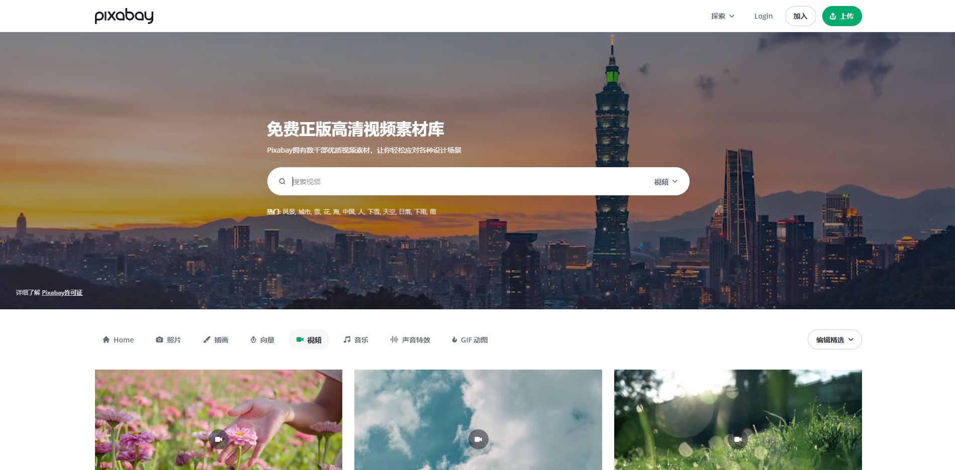 一个比较受欢迎无版权素材网站,它里面有图片素材和视频素材可以下载使用,素材质量都挺高的,视频素材类型也比较全面,并且支持中文搜索。