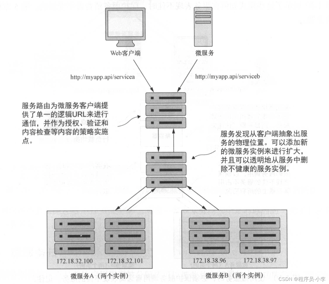 3. 服务对客户端透明。客户端无需关注服务真实部署地址,通过服务注册与服务发现中间层代理实现解耦,无需关注服务部署的相关信息。