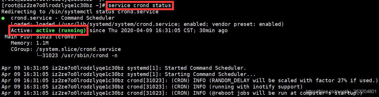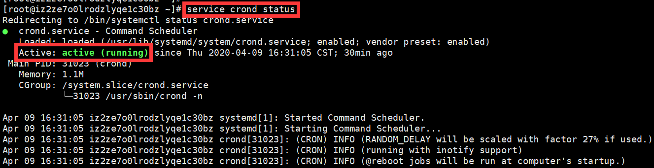 开启定时任务服务后 用这个命令 service crond status 来查看一下