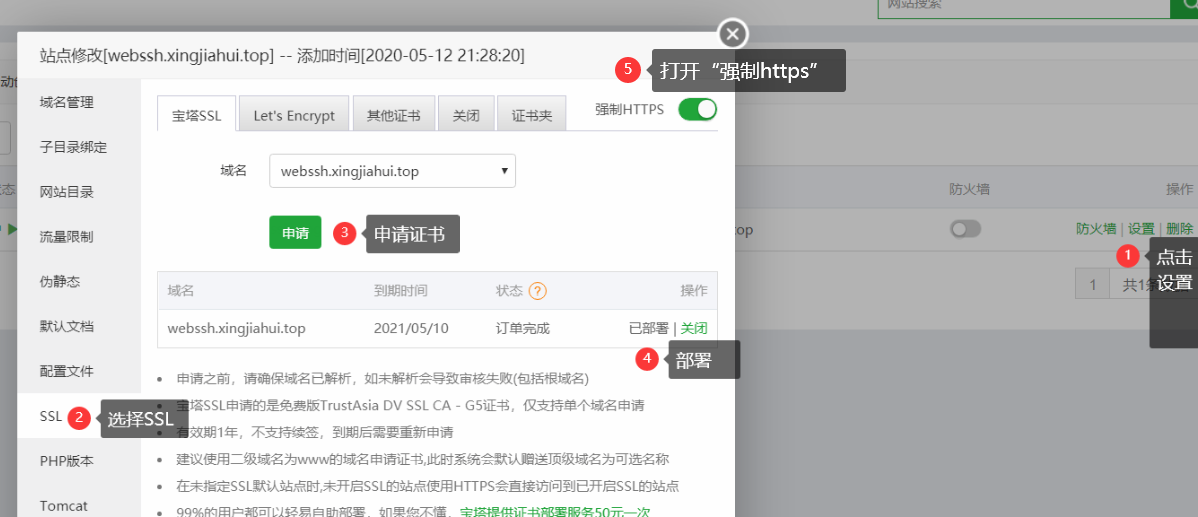 设置SSL证书: