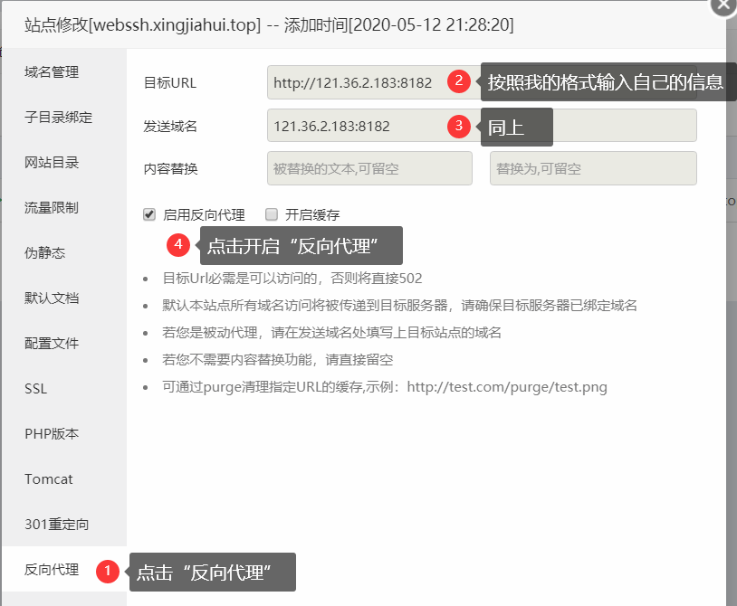 - 反代的域名: