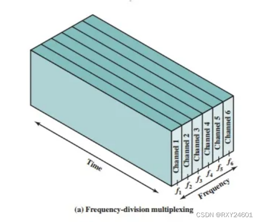 对于FDM,链路的频谱由快跨越链路创建的所有连接共享,特别是在连接期间链路为每条连接专用一个频段,也就是大家同时传输,但是占用不同的频率。比如channel 1使用x-y赫兹,channel 2使用y-z赫兹。