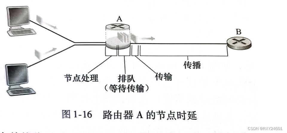 每台分组交换机有多条链路与之相连,对于每条相连的链路,分组交换机具有输出缓存(输出队列)。当链路用于传输其他分组时,该到达分组必须在输出缓存中等待。所以除了存储转发时延之外,还有输出缓存的排队时延。例如:银行柜台前排队,每个人就是一个分组,除去办理业务的时延,还有等待前面人导致的排队时延