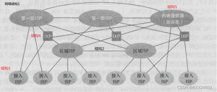 网络服务提供商(Internet Service Provider,ISP):每个ISP自身就是i一个由多台分组交换机和多段通信链路组成的网络,ISP为端系统提供了各种不同类型的网络接入,也为内容提供者提供因特网接入服务