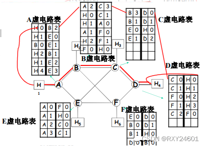 特点 | 分组的目标地址决定下一跳;在不同的阶段,路由可以改变;类似网络(Internet) | 每个分组都带标签(虚电路标识VC ID),标签决定下一跳;在呼叫建立时决定路径,在整个呼叫中路径保持不变;路由器维持每个呼叫的状态信息;X.25和ATM |