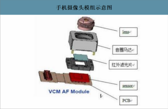 VCM,即电子学里面的音圈电机,是马达的一种,主要原理是利用一个永久磁场,通过改变马达内线圈电流的大小来控制弹片或动子的位置,带动镜头进行运动,从而实现镜头的自动对焦。