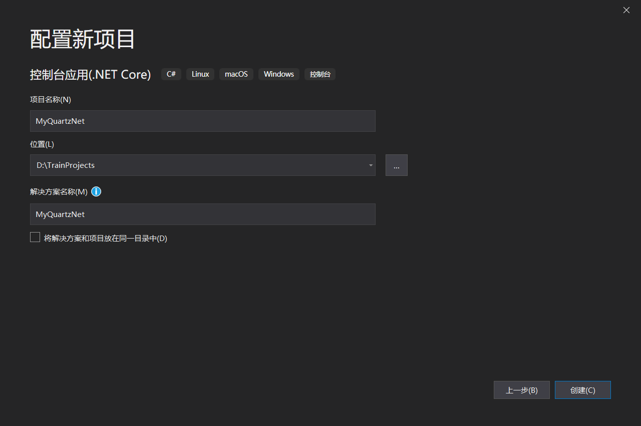 首先创建一个控制台应用程序