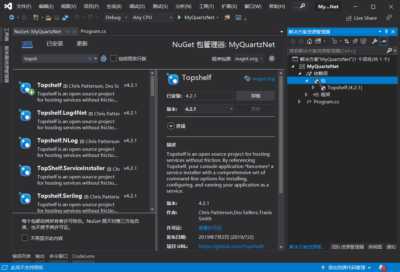 然后NuGet引用Topshelf.dll程序集