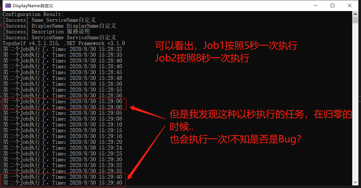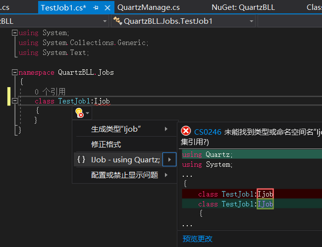 class TestJob1 : IJob{public async Task Execute(IJobExecutionContext context){await Task.Run(() =>{Console.WriteLine($"第一个Job执行了,Time:{DateTime.Now}"); });}}class TestJob2 : IJob{public async Task Execute(IJobExecutionContext context){await Task.Run(() =>{Console.WriteLine($"第二个Job执行了,Time:{DateTime.Now}"); });}}