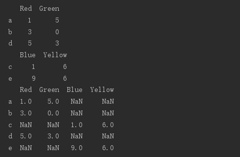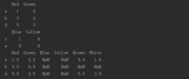 df3=pd.DataFrame({'Red':[1,3,5],'Green':[5,0,3]},index=list('abd'))