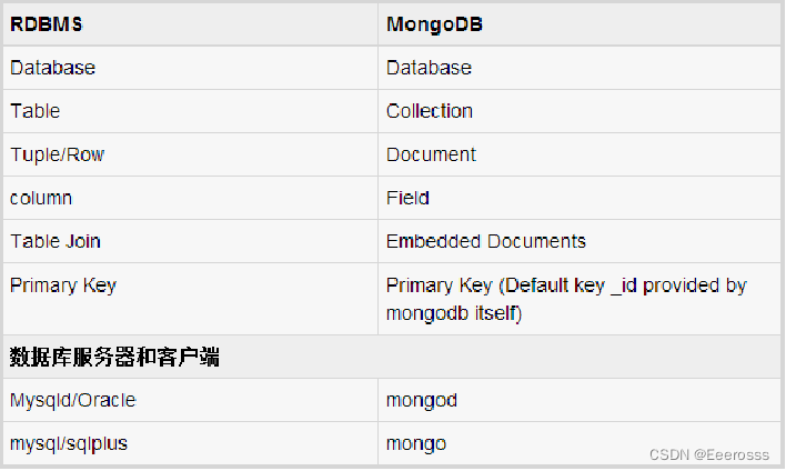 架构: MongoDB 是文档型数据库,其中一个集合保存不同的文件。字段的数量,内容和该文件的大小可以是从一个文件复制到另一个。