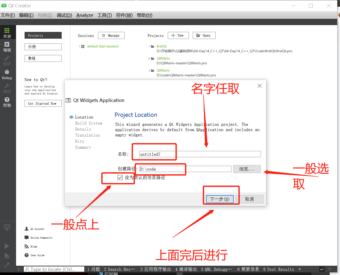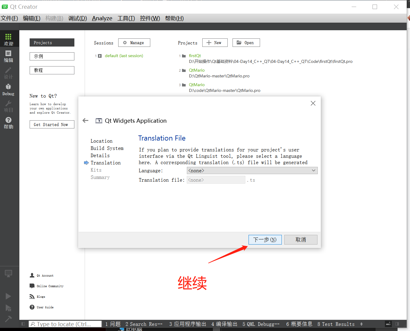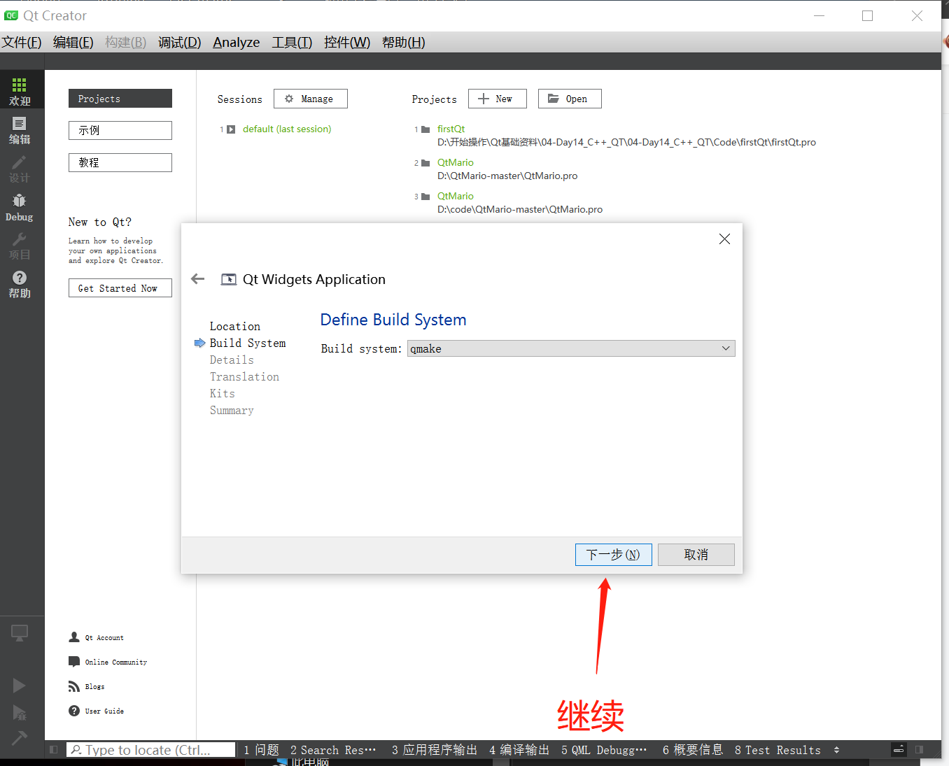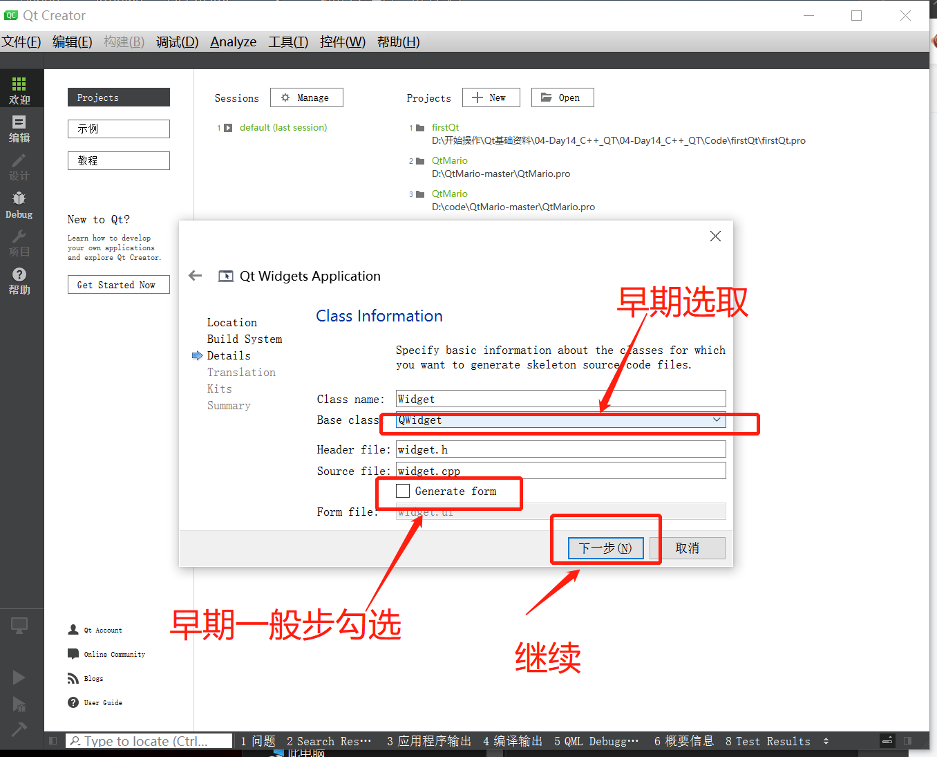 widget 窗口模块 mainwindows等模块,一般选取widget 窗口。