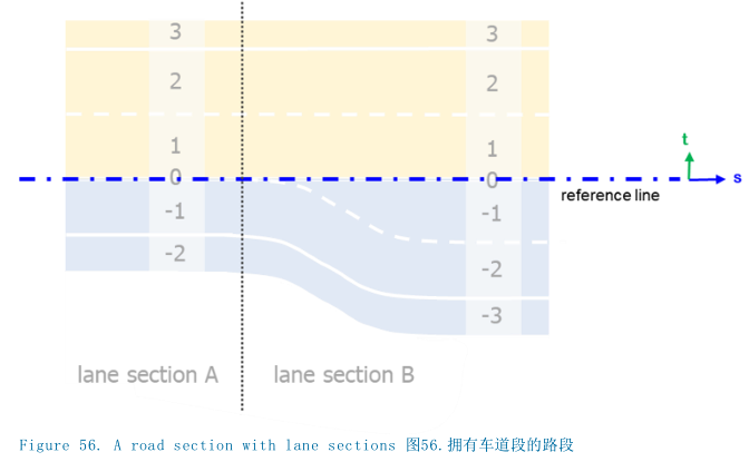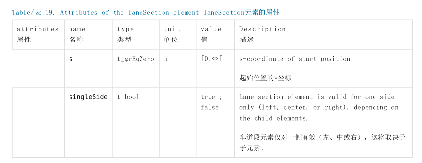 在OpenDRIVE中 ,车道段用 <lanes> 元素里的 <laneSection> 元素来表示。