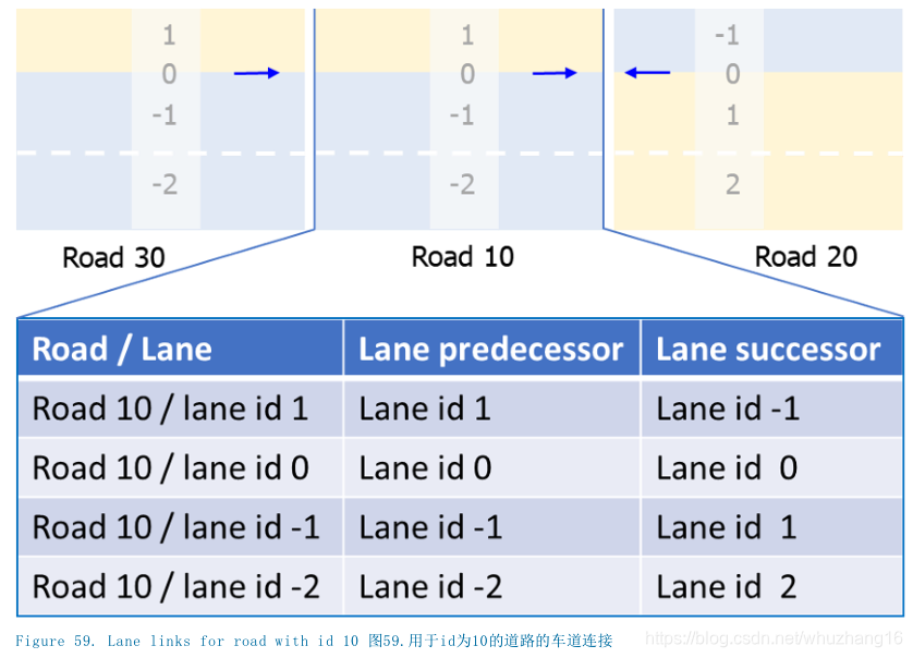在OpenDRIVE中,车道连接用<lane>元素里的<link>元素来表示。<predecessor>和<successor>元素在<link>元素内得到定义。
