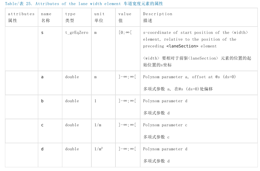 在OpenDRIVE中,车道宽度由 <lane> 元素中的 <width> 元素来描述。