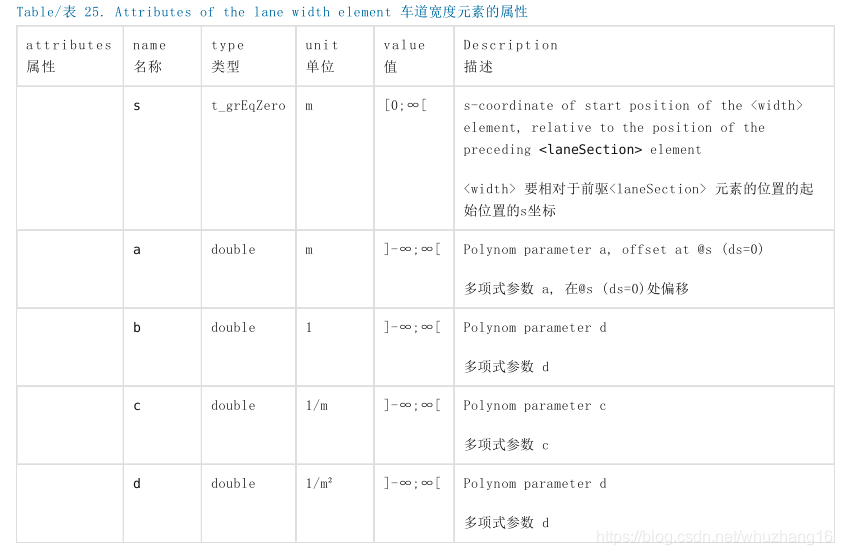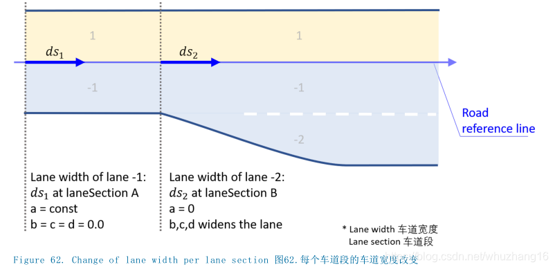 - 必须为整个车道段的长度定义车道宽度。这意味着s=0必须要有一个<width>元素。