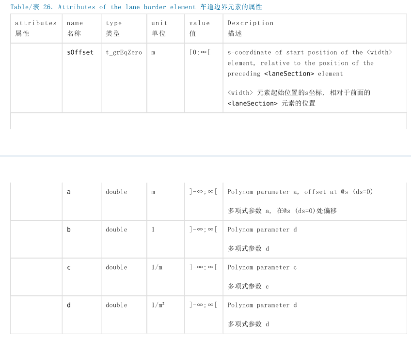 在OpenDRIVE中,车道边界用 <lane> 元素中的 <border> 元素来表示。