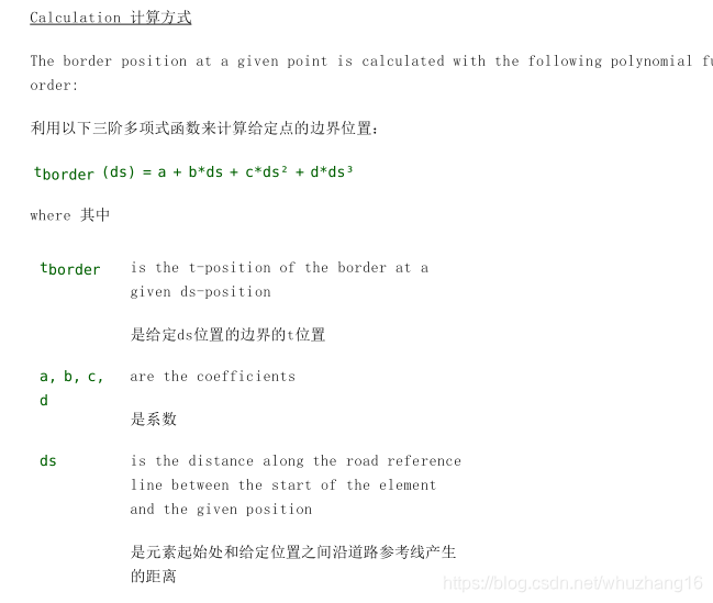 其中,offset 是在给定点处的横向偏移;a, b, c,d是系数;ds是新的道路偏移元素起始处和给定位置之间沿道路参考线产生的距离。