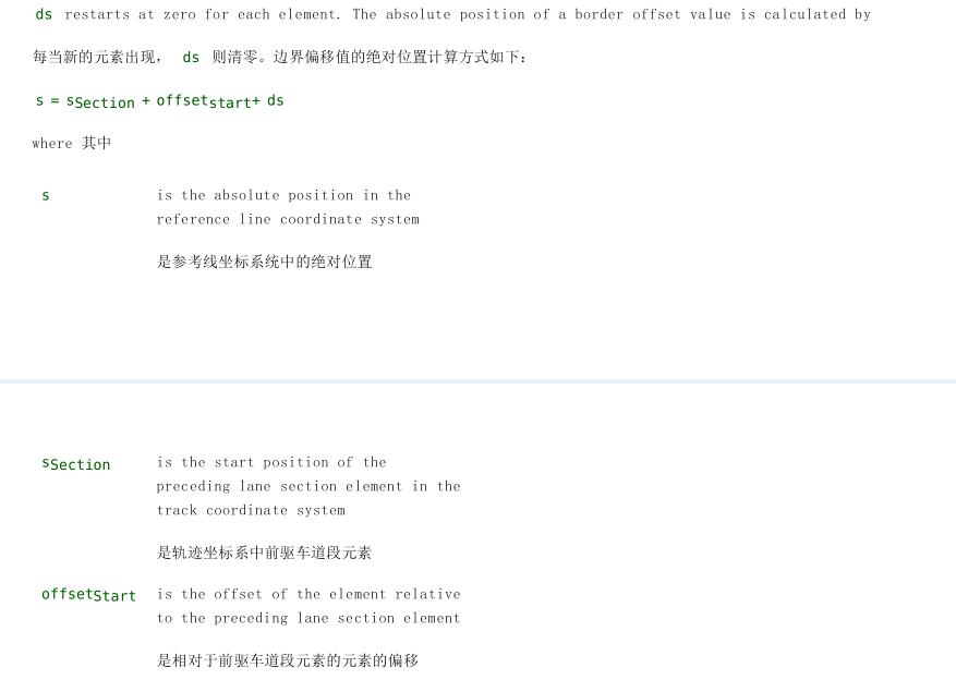 其中,s是参考线坐标系统中的绝对位置,ss是参考线坐标系统中元素的起始位置。