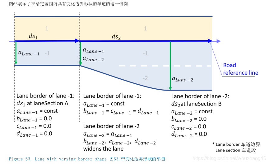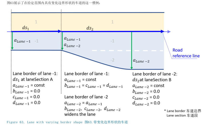 - 车道属性的定义必须相对于相应车道段的起点来展开。