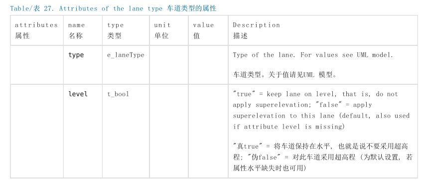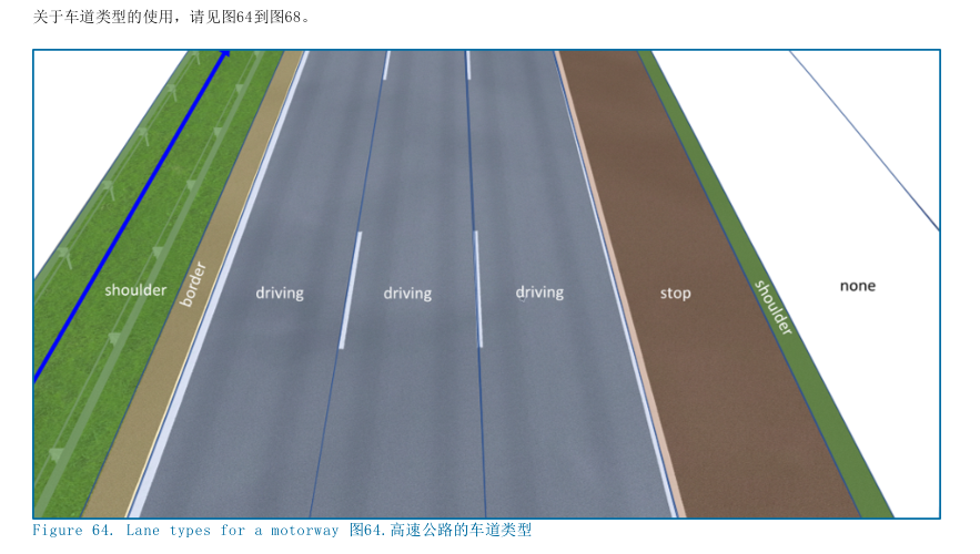 在OpenDRIVE中,车道类型用<lane>元素内属性@type元素来表示。