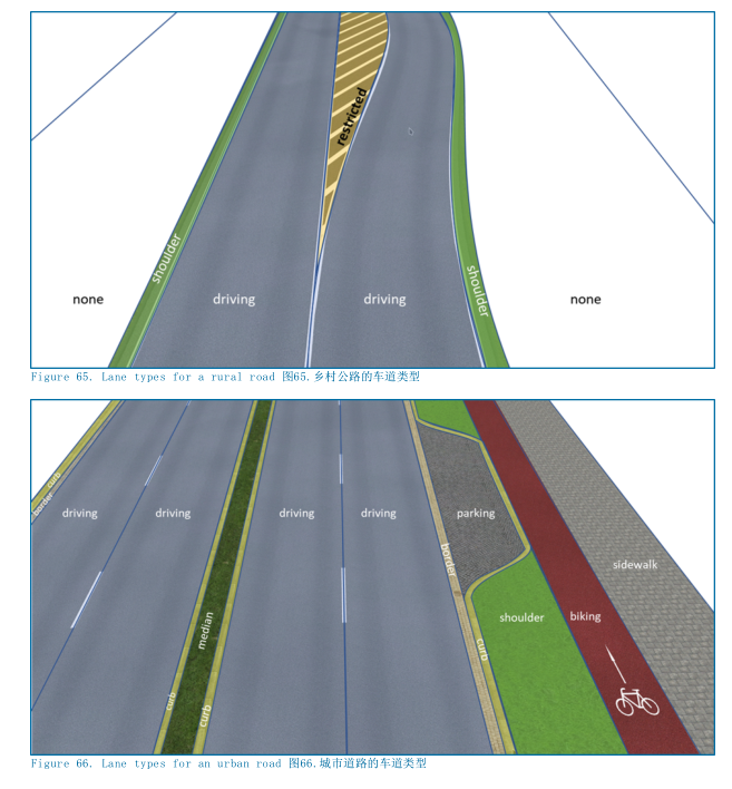 边界border:描述了道路边缘的硬边界。其与正常可供行驶的车道拥有同样高度。