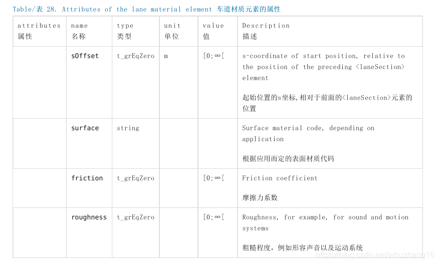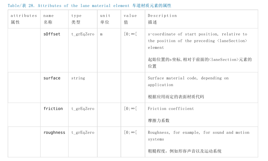 在OpenDRIVE中,车道材质用<lane>元素内的<material>元素来表示。