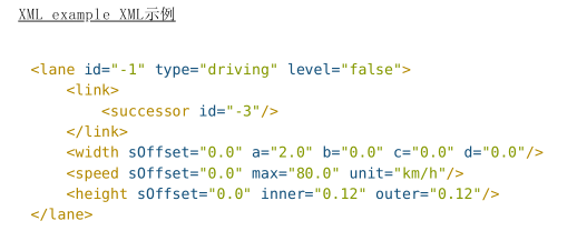 在OpenDRIVE中,车道用 <road> 元素里的 <lanes> 元素来表示。