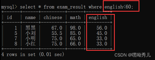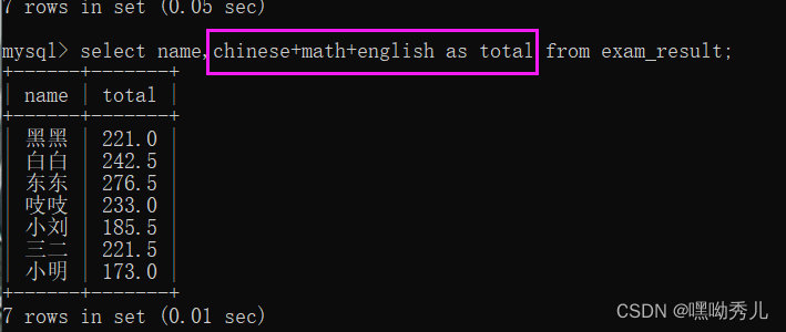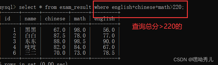 表达式查询,还可以 列和列之间进行运算 进行查询