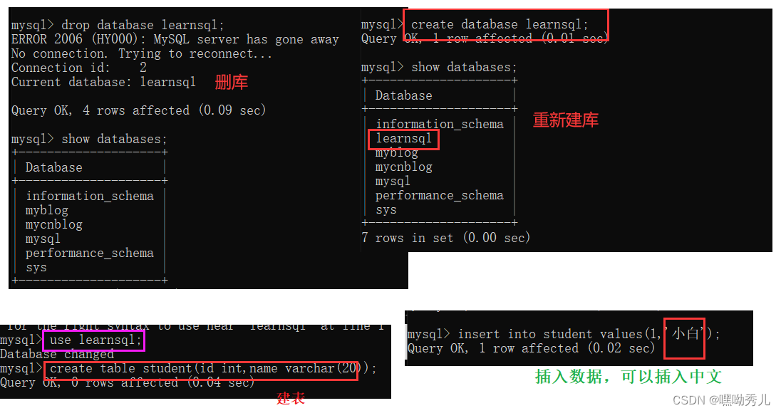 ->如果sql敲错了,可以按 ctrl+c来终止sql。