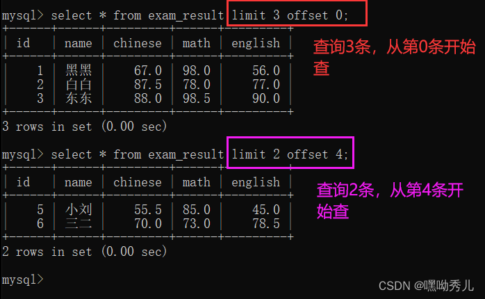 select 列名 from 表名 limit N; //查询前N条记录select 列名 from 表名 limit N offset M; //从第M条数据卡是,查询N条记录