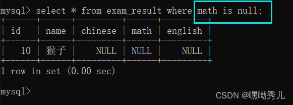 IS NULL / IS NOT NULL:看当前值是否为空值/是否非空