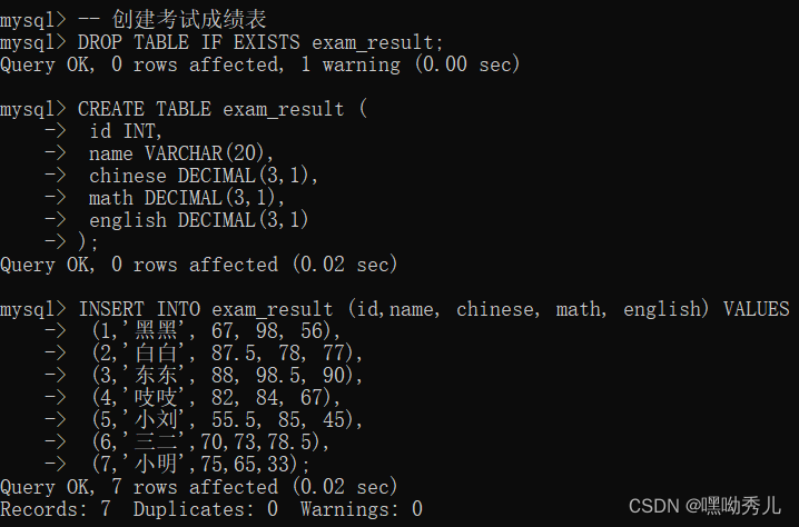 ->加上 if not exists;创建表时,如果不存在就创建;存在也不会报错。