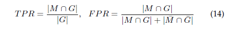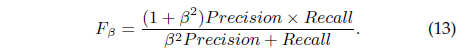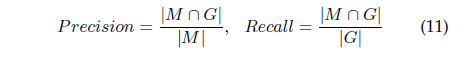 (1) 精确召回(PR)。首先将显著图S转化为二进制掩码M,然后通过将M与地面真值G进行比较来计算Precission和Recall: