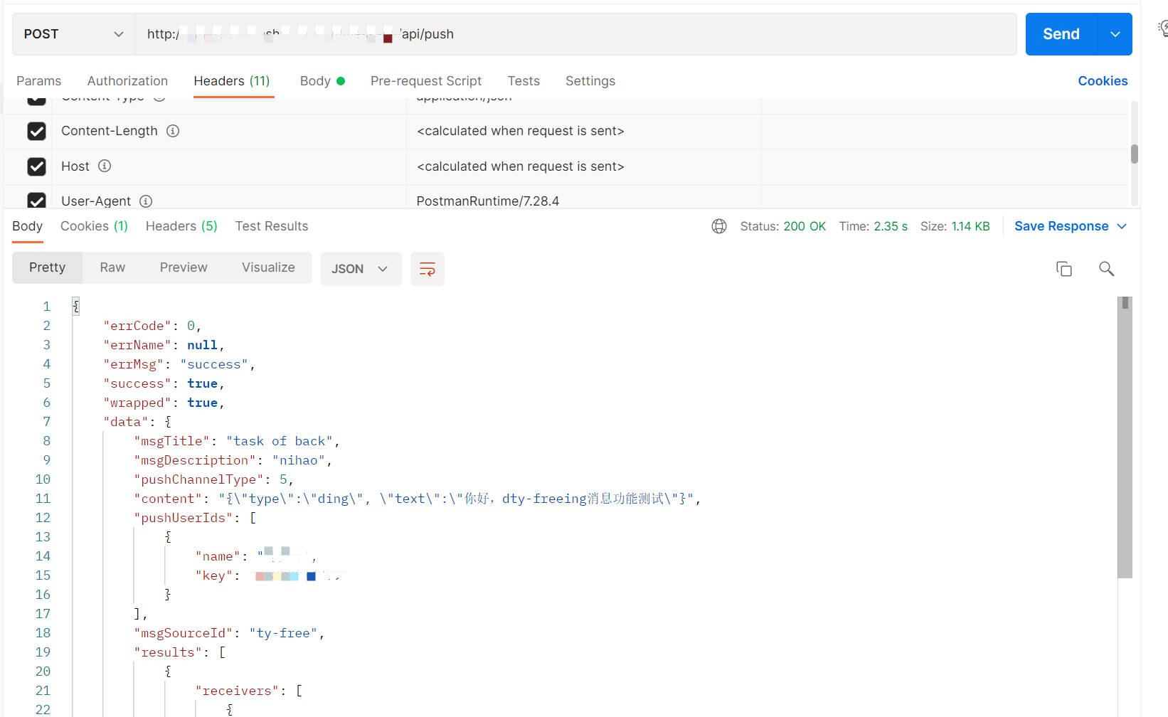然后用postman调同样的接口,传相同的参数,请求接口返回的数据正常: