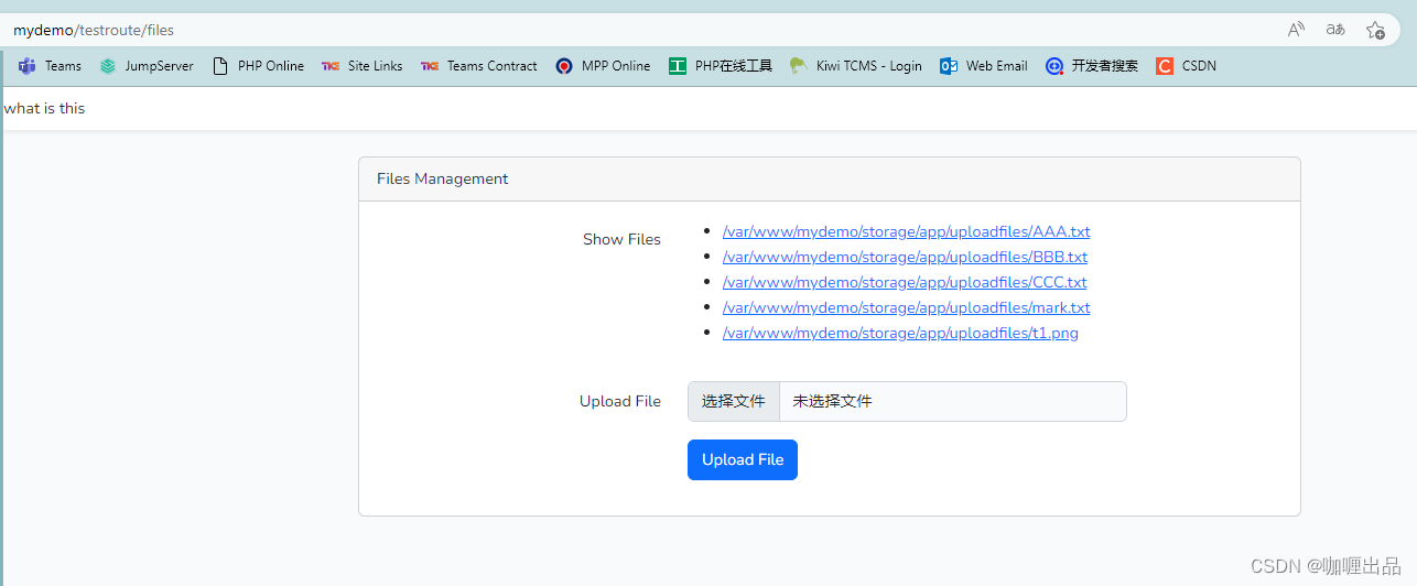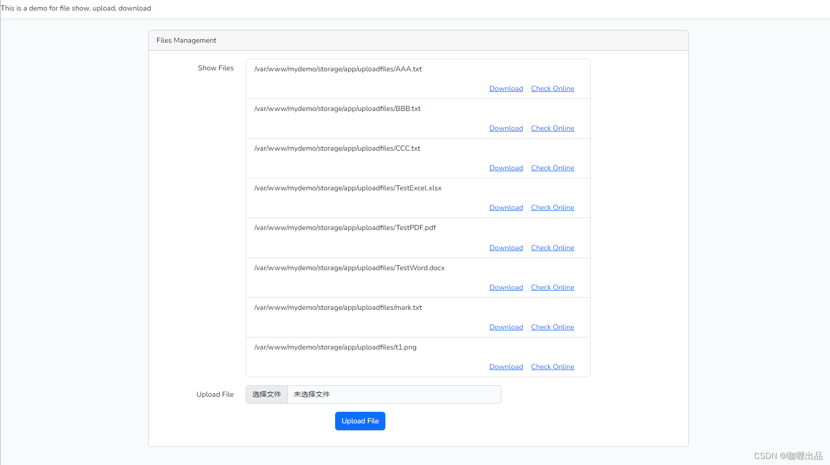 Route::get('/files', [App\Http\Controllers\TryDemo\FilesManagementController::class, 'showFiles']);通过 form 表单提交上传的文件