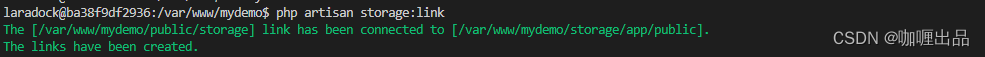通过上图可以看到,我们已经配置两个软链接,名为 storage 的软链接指向的是 storage/app/public 文件夹,名为 myuploadfiles 的软链接指向的是 storage/app/uploadfiles 文件夹。当你在配置文件里什么都不配置的时候,直接运行如下命令,系统会自动生成名为 storage 的软链接。